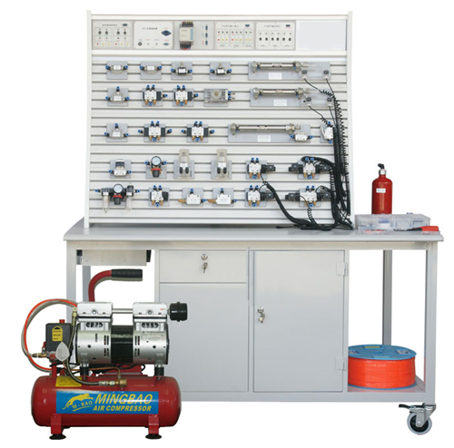 气动PLC控制实验台是根据《液压与气压传动》、《气动控制技术》等通用教材内容要求,参考广大师生的建议,精心设计而成。该系统除了可以进行常规的气动基本控制回路实验外,还可进行模拟气动控制技术应用实验、气动技术课程设计,以及可编程序控制器 (PLC)学习及其基本应用实验等,是机电完美结合的典型实验设备。