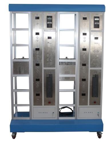 群控多层电梯实训装置是将 PLC 、变频调速、传感器应用、位置控制、复杂的开关量控制、时序逻辑控制有机结合成一体的教学装置。适合于楼宇自动化、机电一体化等专业的群控多层电梯实训装置仿真实际电梯结构,采用联体设计方式,将左、右二部电梯安装在同一个底座上,井道中间位置安装各楼层的外部呼叫按钮和轿箱状态显示装置。每部电梯都有独立的电气控制系统、变频驱动系统和轿厢门安全控制系统,程序冗余设计。